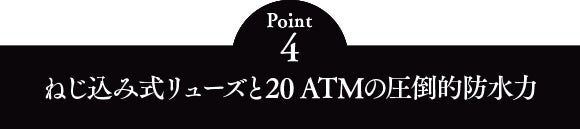 加えてロレックス(Rolex)によく用いられている「ねじ込み式」のリューズを使用することにより、時計内部を完璧に密封し、水やホコリが時計内部に入ることを防ぐ構造になっています。