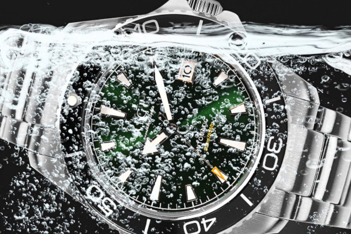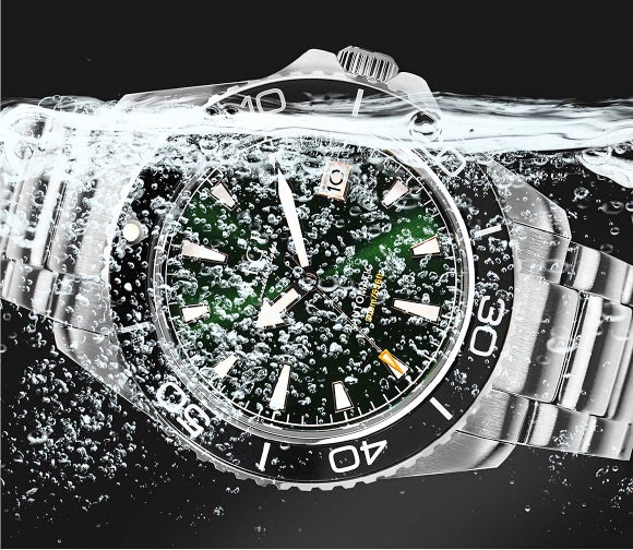 サンバーストダイアルを用いた限定モデルは光源に傾けることによりオーロラをモチーフにした緑の美しい輝きを放ちます。