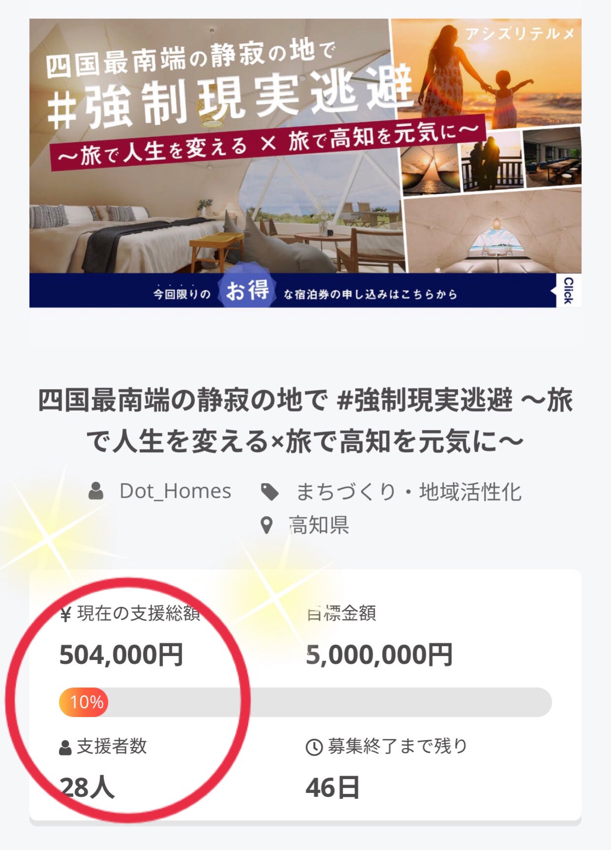 みなさま、こんにちは。発起人の留田紫雲です。ご支援者様、応援団の皆様、リターンをご提供下さった企業様、このプロジェクトに携わって下さったみなさまのお陰で、無事、終了日を迎えることができました。多大なご支援と応援に、心より御礼申し上げます。どうもありがとうございました。アシズリテルメは予定通り、11月1日にオープンをいたします。この施設がご宿泊者様の人生を変えるような「特別な体験」をご提供し、高知県の経済活性化・地方創生へ貢献できる施設となるよう、スタッフ一丸となって精進して参ります。(現在、目下準備中です)さて、この最後の活動報告では、改めて私の思いをお伝えさせてください。長文となり恐縮ですが、ご一読いただけますと幸いです。このプロジェクトが始まったきっかけですが、プロジェクトページでもお伝えさせていただいた通り、アシズリテルメのリニューアルを進める中で、同施設が提供する「特別な体験」の価値を実感し、一人でも多くの方にお届けしたいと強く思った一方、スケジュールなど様々な理由で、まだ旅行の計画を立てられない方々の残念な思いも知り、双方を幸せにできる方法を模索した結果、クラウドファンディングであればその解決ができるのではないかと考えたことです。そして、アシズリテルメを通じて、コロナ禍で観光客数が減少し、経済的打撃を受けた高知県、観光業を何とか盛り上げることができないかという気持ちも私の中に強くありました。そして、ここからは、更に踏み込んだ内容、私の思いとなるのですが・・観光業というのは、ホテルだけで成り立っているわけではありません。ホテルが仕入れを行なっている、地元の八百屋さんや肉屋さん、リネン会社や清掃会社、売店で販売するお土産を作っている会社。SUPやカヌーといったアクティビティを提供されている会社。そういった色んなサービスを提供する会社が集まって、観光という分野は成り立っています。そして、そこで働くみなさんは、常にお客様のために努力を続けています。そのような中、突如として発生したコロナは観光客数を大幅に減少させ、観光業に大きな打撃を与えました。観光業に関わる方の怠慢や努力不足などではなく、半ば強制的に、今まで積み上げてきたサービスの品質、利用者からの信頼、育てた従業員といった企業として重要な資産を失いかねない状況が生み出されたのです。他の業界と同じく、観光業も「事業を辞める」という選択は、あまりに多くを失うものです。なぜなら、磨き続けてきたサービスの品質、ご利用者様からの信頼、育てた従業員といった、企業として、かけがえのない大切なものを全て失うことになるからです。私は日頃、宿泊施設の現場を見て、スタッフとも会話をしています。また、仕事柄、年中あらゆるところに旅行に行き、数えきれないほどの宿泊施設を利用しています。だからこそ、観光業に携わる方たちがどれだけ努力をしているか、そして、コロナによってどれだけ大変で悔しい思いをしているか理解しているつもりです。私自身、あまり目立つようなことは得意ではなく、クラウドファンディングを実施することも迷った部分はあるのですが、観光業の方、地域の事業者の方々になんとか事業を継続いただきたいという思いが私の背中を押し、クラウドファンディングを実施する決意ができました。目標金額達成とならず、ご支援・応援を下さった方のお気持ちにお応えできなかったことはとても申し訳なく、悔しく思っております。私の力不足で申し訳ありません。この思いを糧にこれからの活動に全力で取り組んでいく所存です。最後になりますが・・・みなさまのご支援、温かい応援コメントには本当に励ましていただきました。私達だけでなく高知県の事業者様からとても励みになったとお声をいただいております。今月から緊急事態宣言も解除されたこともあり、少しずつ、高知県、観光業にも希望が戻りつつあります。もちろん、まだ慎重に行うべきところはありますが、高知県の経済活性化・地方創生に貢献できるよう、観光業に携わる方が、誇りと愛情を持っている仕事を続けていけるよう、微力でありながら私にできること、DotHomesにできることを行って参ります。改めまして、ご支援・応援、本当にありがとうございました。株式会社DotHomes 留田紫雲