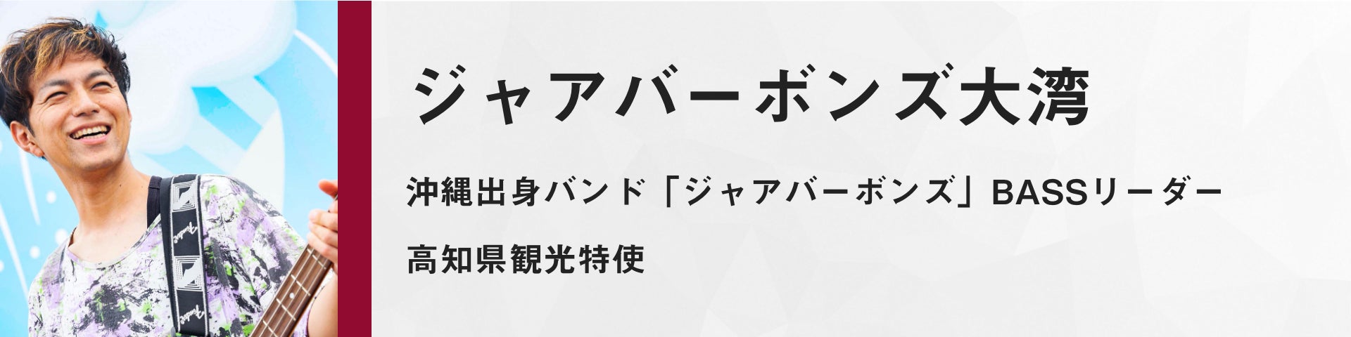 高知県観光特使をされている、沖縄出身バンド「ジャアバーボンズ」BASSリーダーのジャアバーボンズ大湾様です!