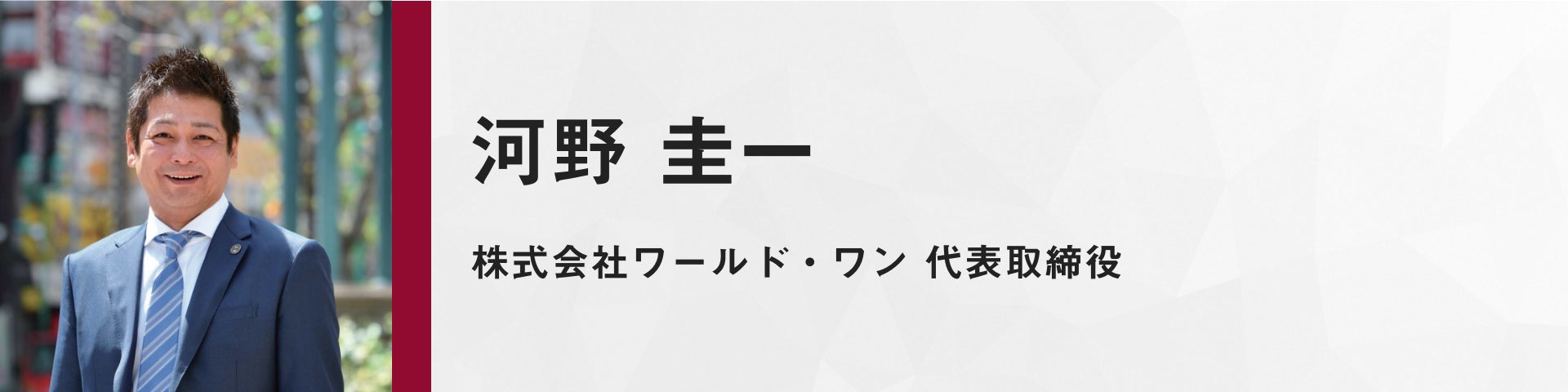 日本全国各地の郷土の食文化を通じて、郷土と地域をつなぎ、ニッポンの風景をアツくする郷土活性化を志す会社、株式会社ワールド・ワンの代表取締役をされている河野圭一様です!