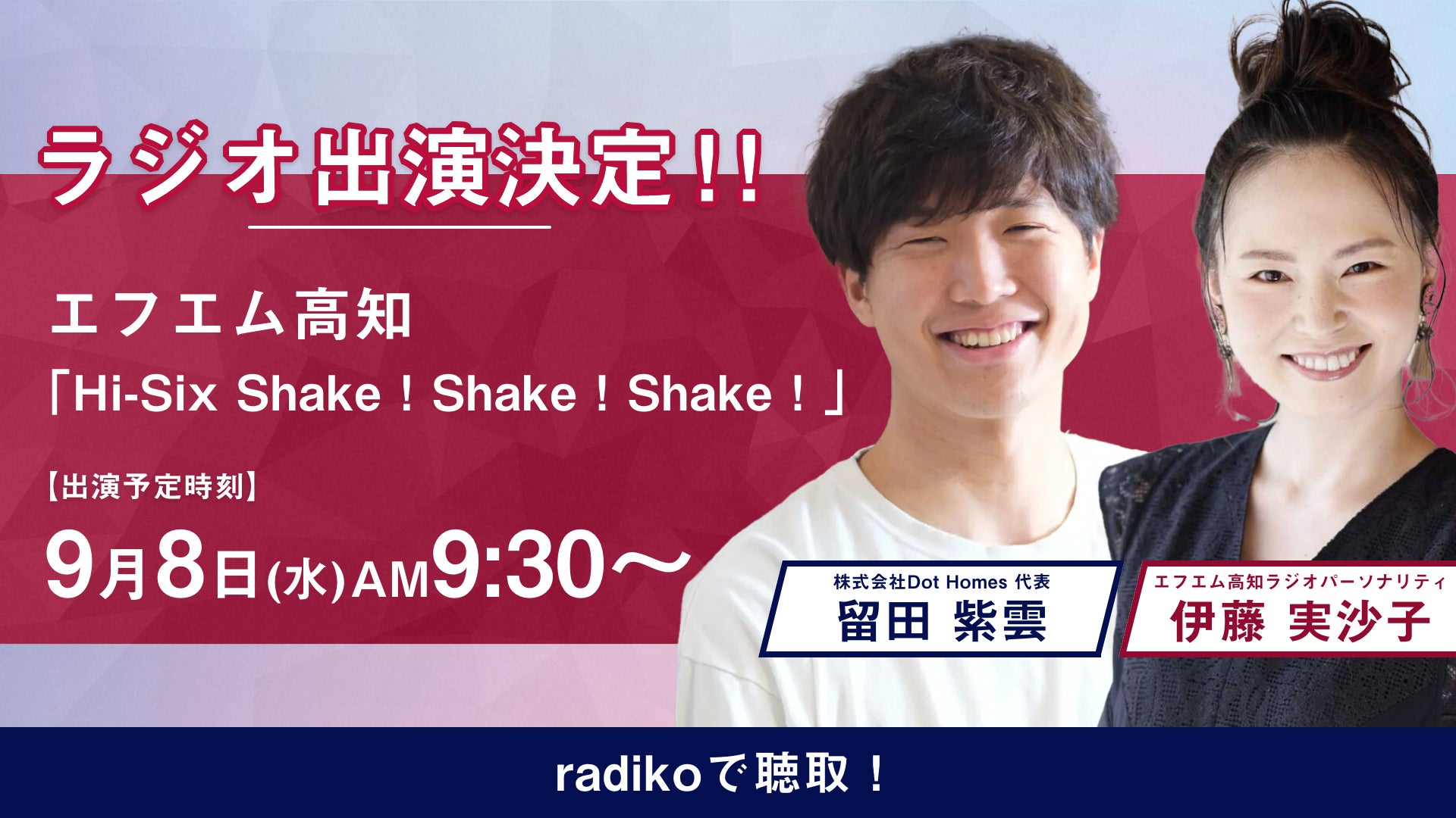 明日、9月8日にエフエム高知「Hi-Six Shake!Shake!Shake!」(ラジオ番組)に出演させていただくことになりました!