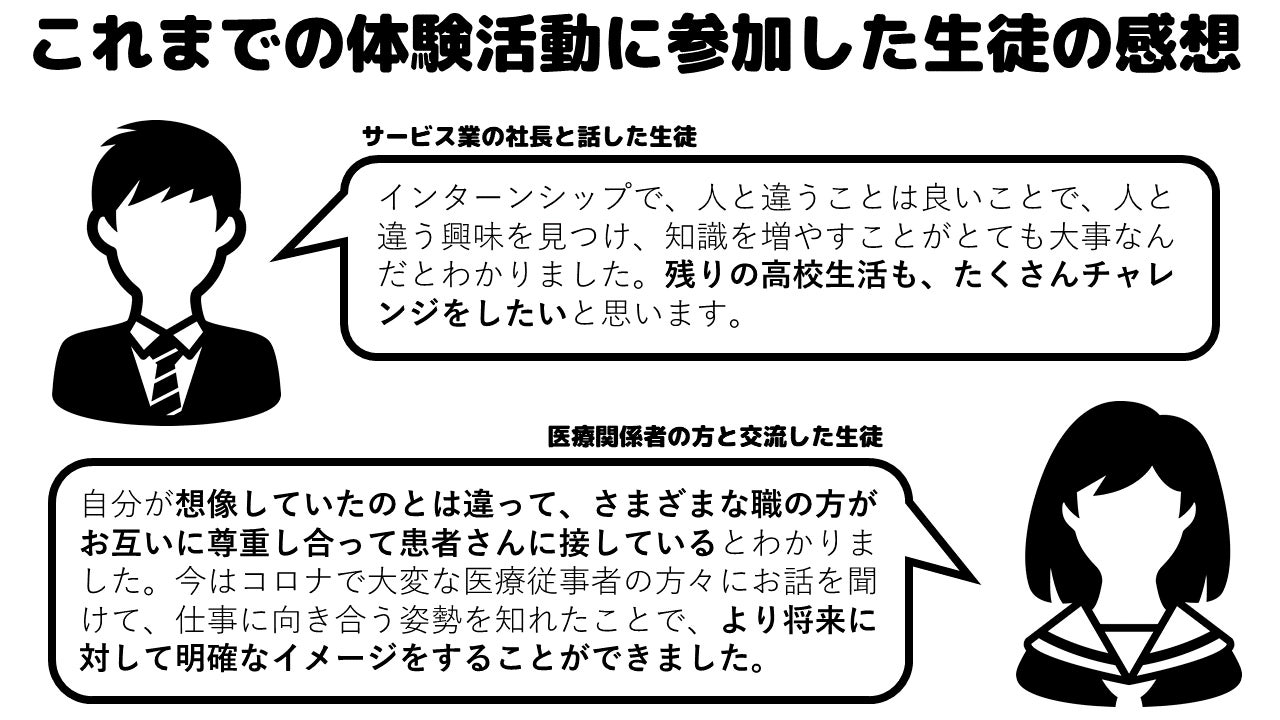 特に学校の外に出て人と交流する職場体験等の体験活動が中止となっている学校も多く、昨今、子どもの体験活動の減少が叫ばれるなか、コロナの影響を受けてさらに学校外の大人との出会いや交流の機会が減ってきています。これまで東海地区を中心に学校と社会をつなぐ教育のサポートを行ってきた弊団体としても、子どもたちの多様な教育機会が減少している事態を重く受け止めています。