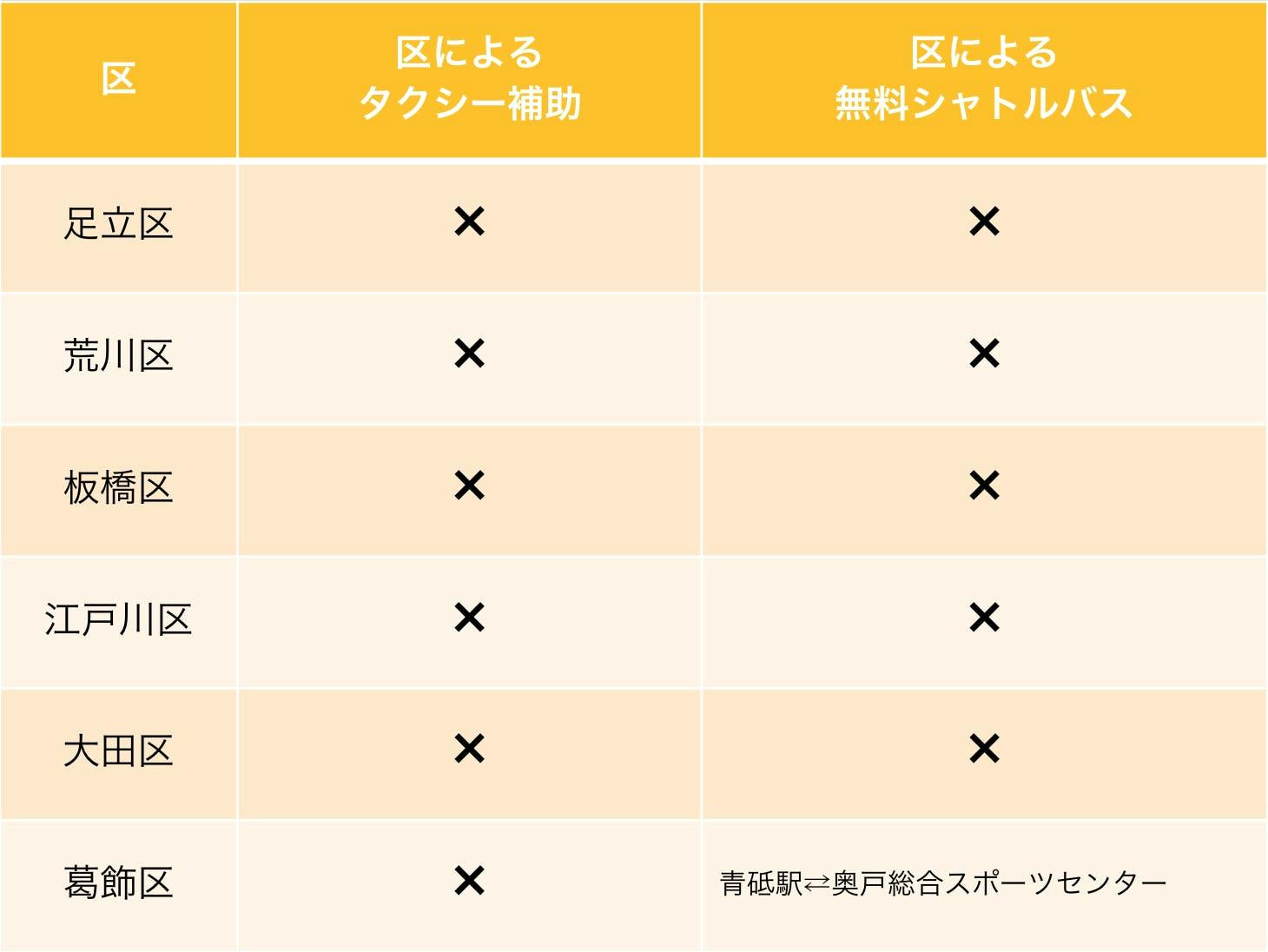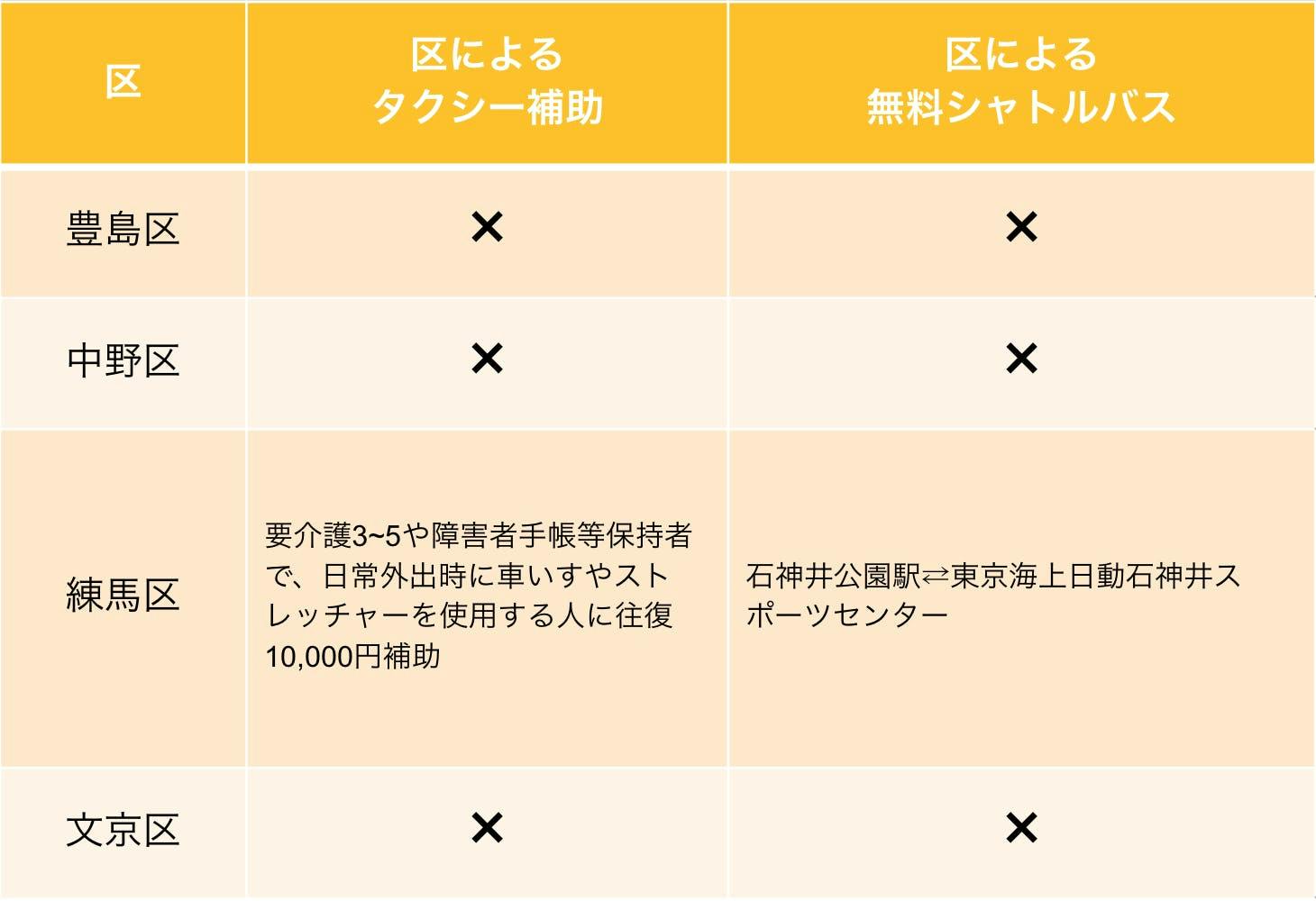 ※インターネット検索により見つけられた情報のみを載せているため、区によるサービスはこの限りではない可能性があります。