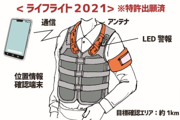 私たちは、この「ライフライト」に改良を加え、GPSによる位置情報機能を追加、さらにデザインを刷新してより救助者の目に留まりやすくする「ライフライト2021」を新しく開発いたします。
