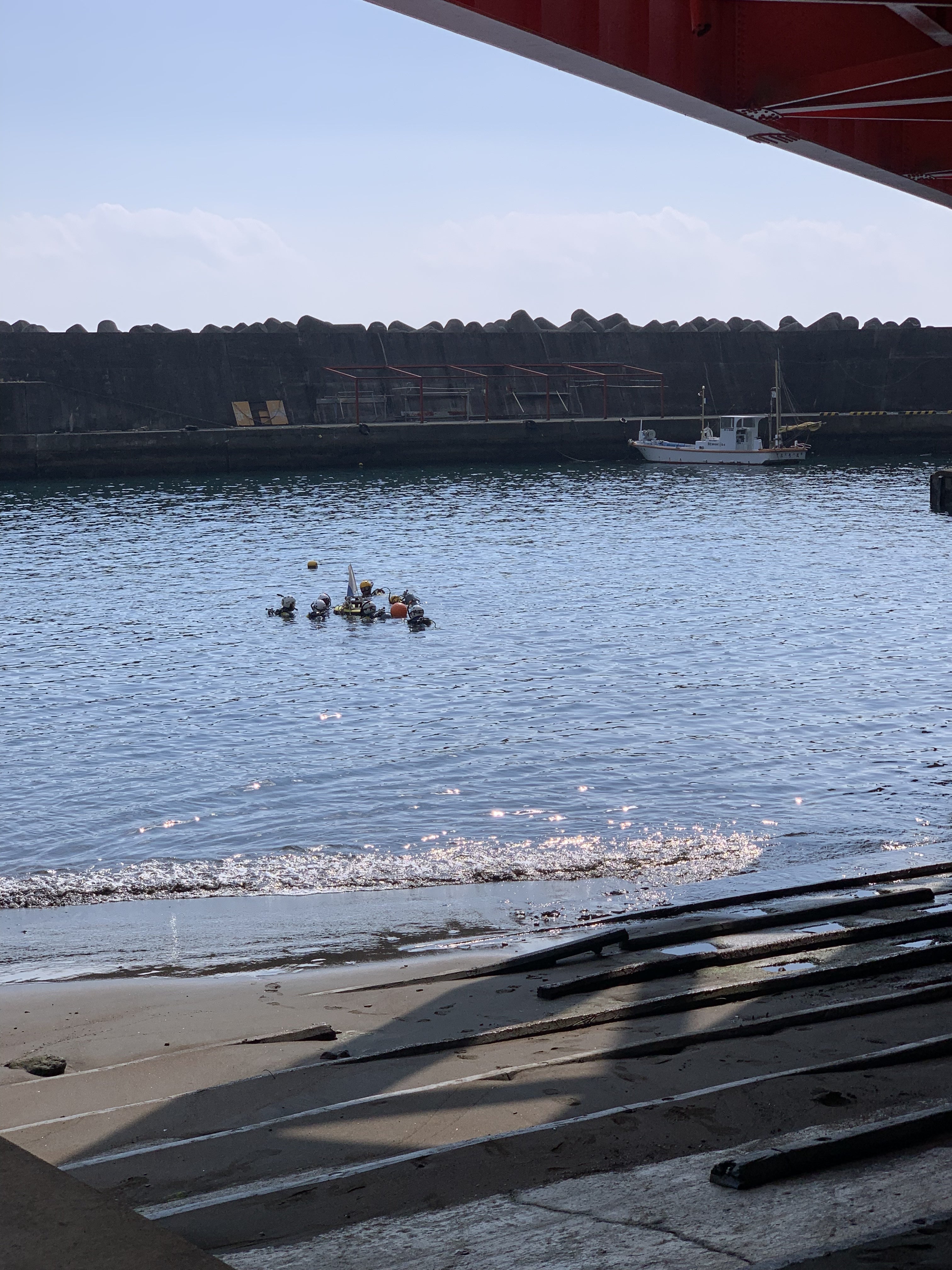 発災から8ヵ月 早朝から警察官の皆様が伊豆山港周辺の海中や海面を大規模捜索を行なってくれてます。自分達漁民は見てる事しかできず。頭が下がります。