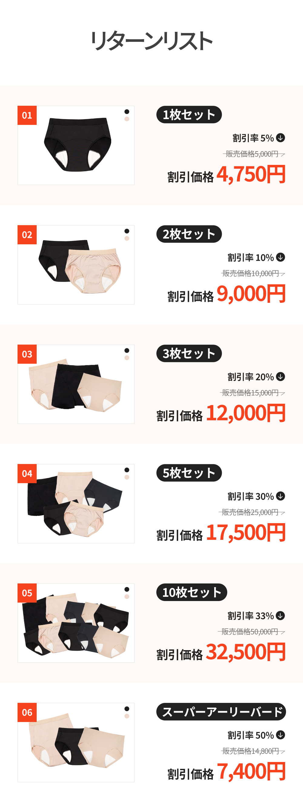 *オプションにてショーツのライン、サイズ、カラーが選択できます。