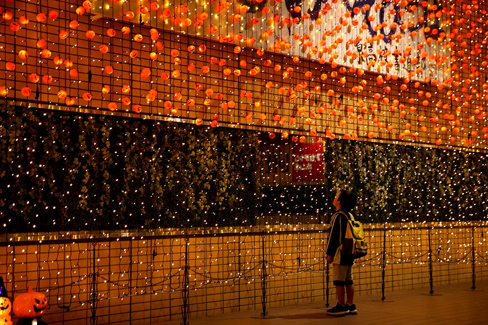昨年に引き続き広場に「かぼちゃライト」を装飾して