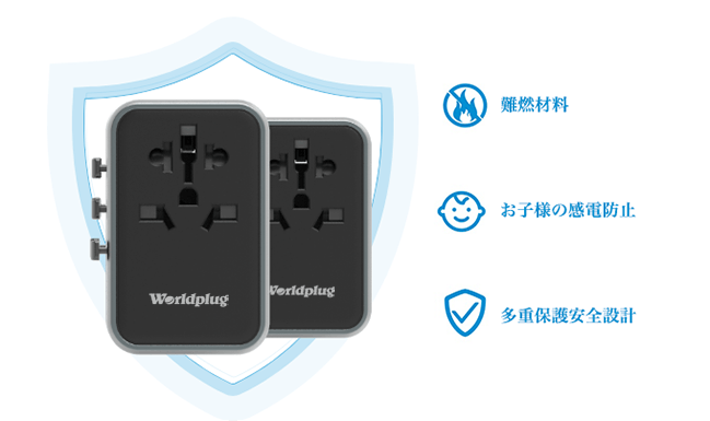 お使いになる方や、ご家族の安全は何より大事なものです。Worldplugはお子様の指や異物などが内部に入ってしまわないように設計されておりますので、接触による感電の心配がありません。