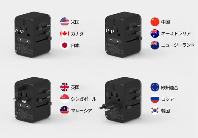 A1:米国、英国、欧州、オーストラリアなど各国でコンセントの規格は異なります。普段お使いのデバイスに海外で給電・充電する際に必要になるのがアダプターです。