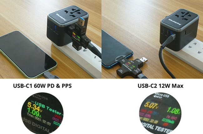 60W PD急速充電だけでなく、Worldplug はQC、PPS 3A、AFC、FCPにも対応しており、アップルやサムスン、ファーウェイの製品も充電できます。