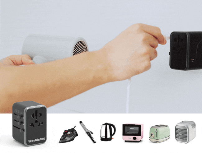 一般的なトラベルアダプターは6A対応ですが、Worldplugは10A対応です。アイロン、ヘアアイロン、電気ポット、ドライヤー、電子レンジ、ミニオーブン、ホームベーカリー、冷風機など大部分の家電に使用することができます。