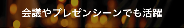 コンパクトで持ち運びやすいサイズなので、【ハンディ・シアター】はさまざまな場所での会議やプレゼンシーンでも活躍してくれます。これまでパソコンのモニターを使っていた会議やプレゼンテーションも、大きくて鮮明な画面で見ることでよりインパクトのあるものになります。