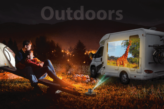 4000ルーメンの明るさと2Wのデュアル・スピーカー内臓により、アウトドアシーンでも夜空の下で好きな映画を楽しむことができますので、キャンプやバーベキュー、パーティーでも大活躍。パソコンやスマホなどの画面をスクリーンに投影しながら、映画はもちろん、撮影した写真やビデオの再生など仲間との思い出を共に振り返ったり、あなたの思いのままに楽しい時間を作れます。
