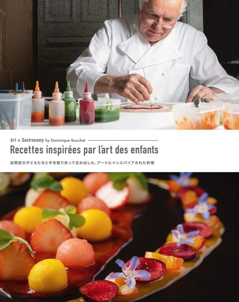 自閉症の子どもたちの未来をアートの力で輝かせたい!彼らの力強い作品に心を揺さぶられたドミニクシェフが、その驚くべき色彩と料理をクロスさせた「レシピ付きブックレット」を作ります。子どもたちの才能と可能性を知ってもらいたいという強い想いを料理に託し、レストランでも期間限定「特別コース」をご提供いたします