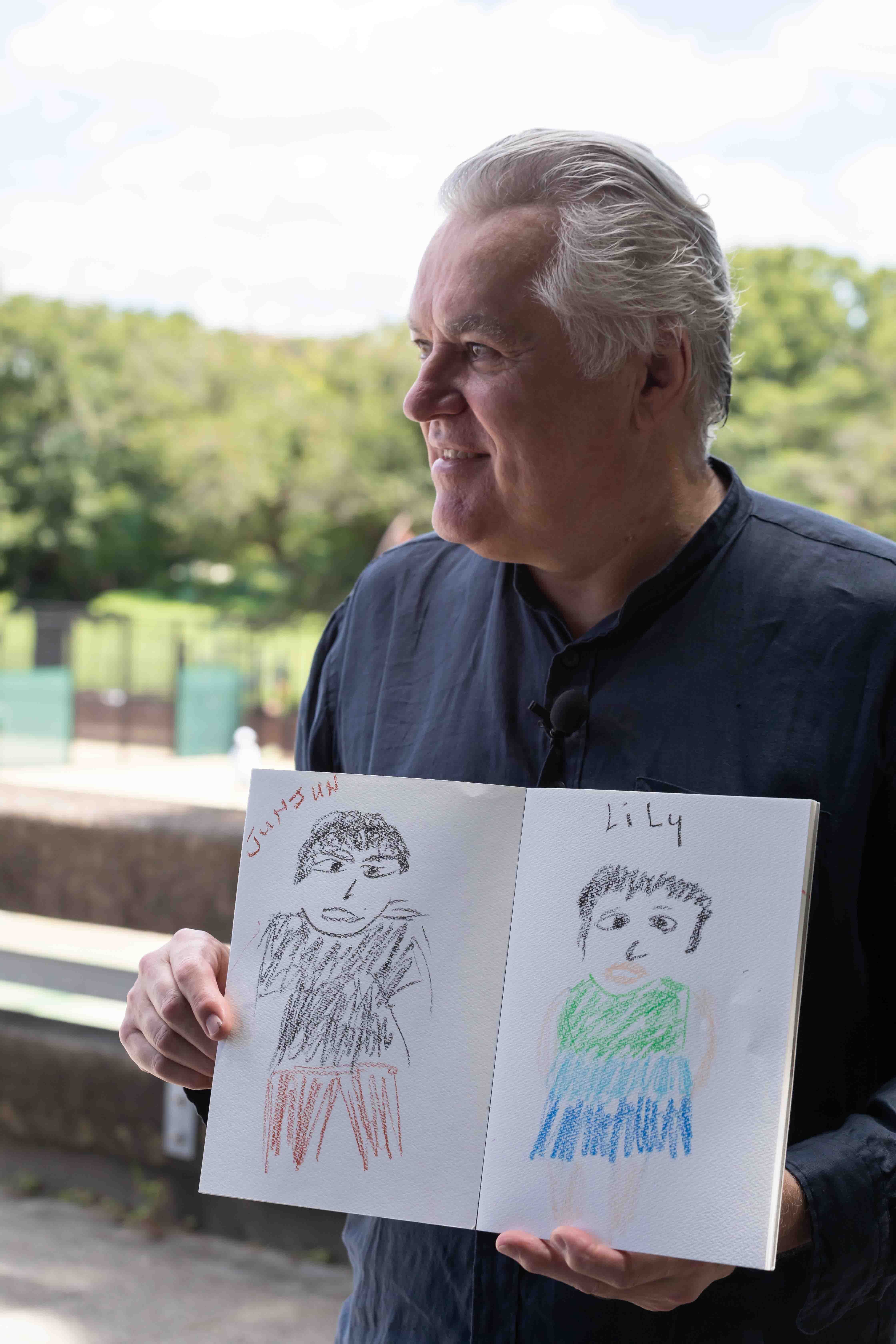 ドミニクシェフは、子どもたちの作品を初めて見たとき、その色彩の豊かさに衝撃を受けました。まるで子どもたちの声が聞こえてくるような不思議な印象を受けたと言います。ピュアで、優しくて、そしてエネルギーに満ちた子どもたちの内面にドミニクシェフは料理魂を揺さぶられたのです。