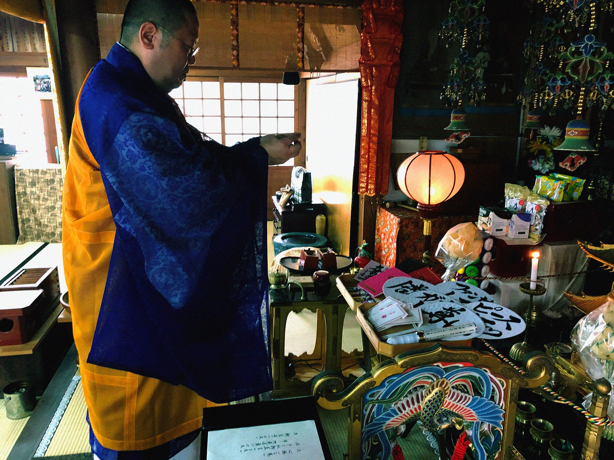 長久寺住職となる以前、私は京都の歴史ある真言宗のご本山に奉職しておりました。そこでご縁があり、漫画やアニメ作品とのコラボレーションをお手伝いさせていただいたことがあります。アニメ作品の熱心な若いファンの方々がお寺へと訪れる様子に触れた経験から、たとえそれが現実に存在しないものであろうとも、家族や恋人同様に想いを馳せることに向き合い、受け止める新しいお寺としての在り方をめざしたいと思った次第です。