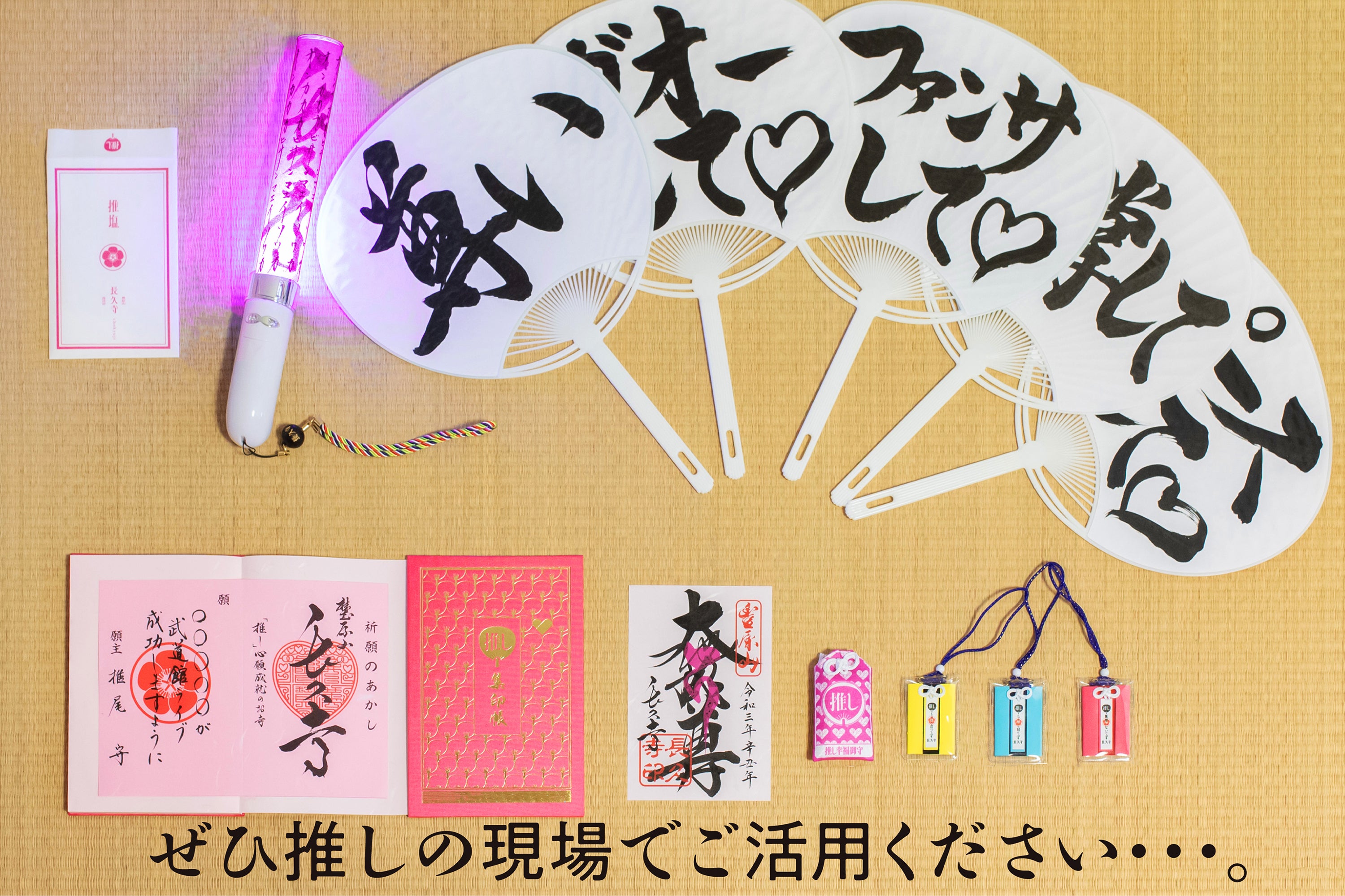 ライブ会場などでご活用いただける長久寺謹製の「推しうちわ」でございます。ファンサへのご祈願をした後、お送りいたします。