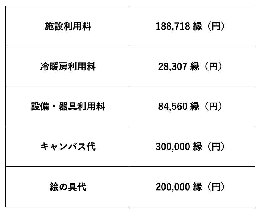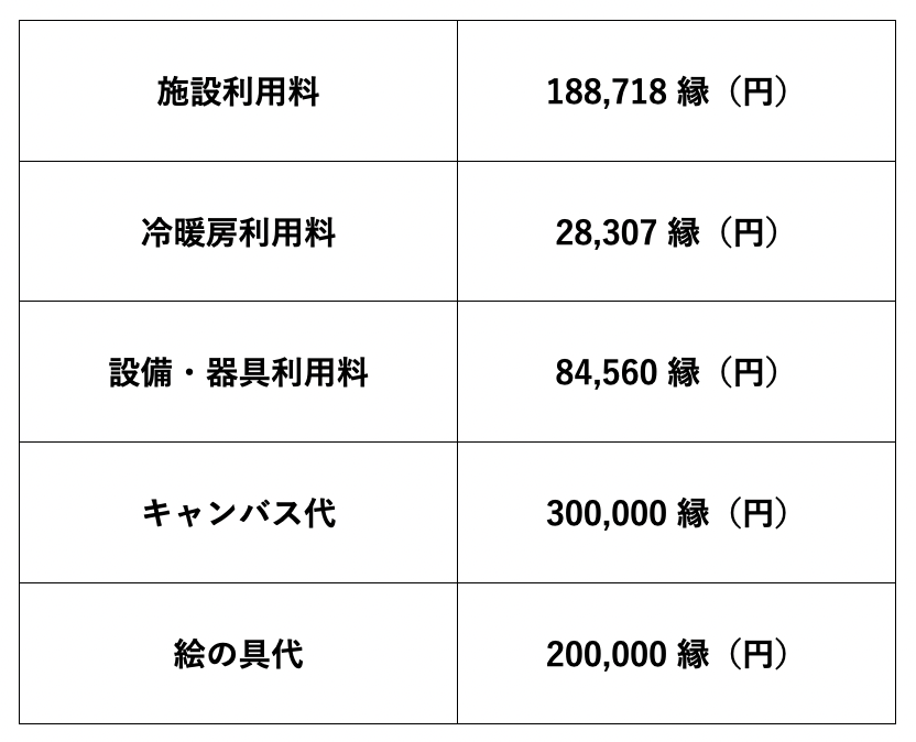 ▲出雲個展のための主な経費