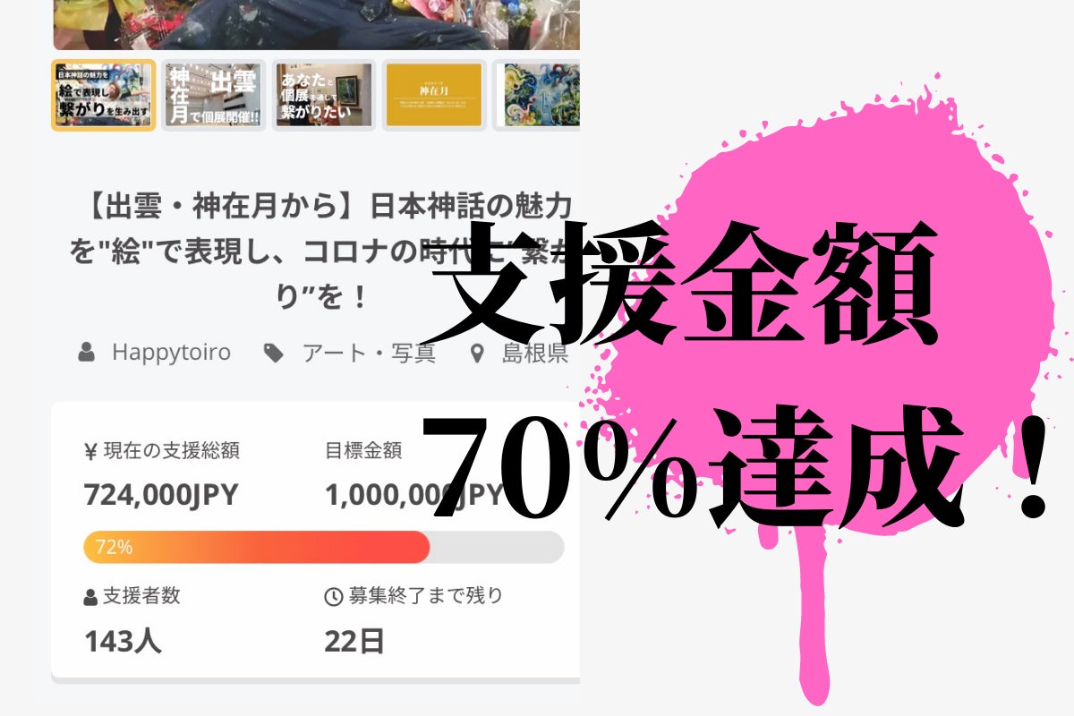 このまま目標金額を突破し、皆さまとの“繋がり”を出雲個展大成功に繋げられるよう全力を尽くして参ります!