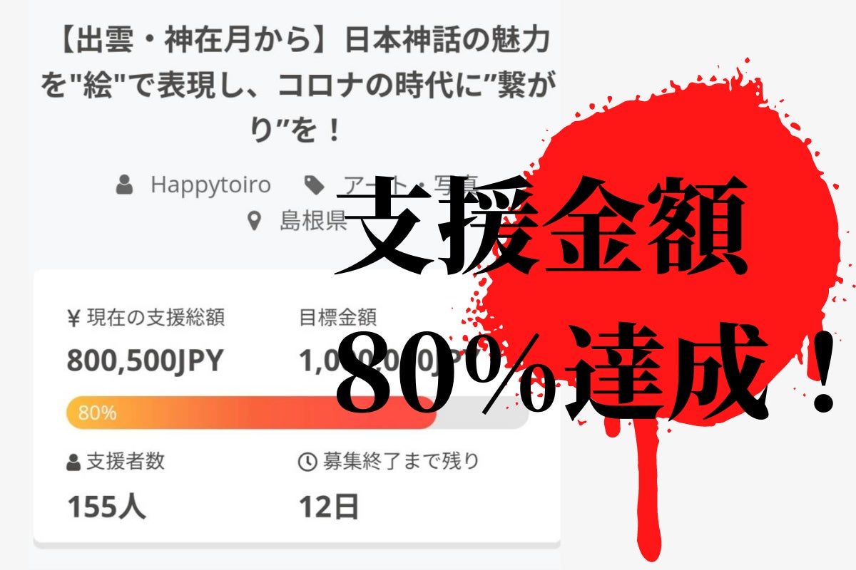 このまま目標金額を突破し、皆さまとの“繋がり”を出雲個展大成功に繋げられるよう全力を尽くして参ります!