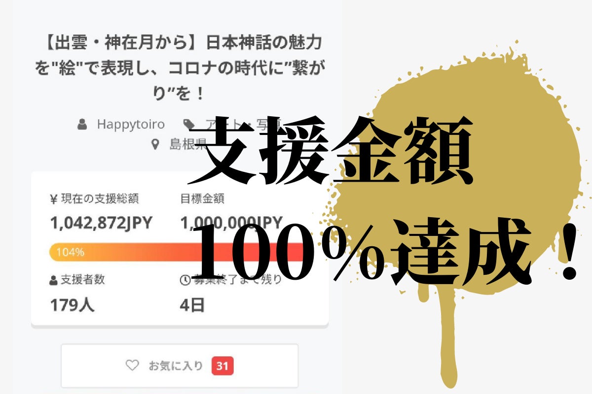 この度は、『【出雲・神在月から】日本神話の魅力を絵で表現し、コロナ禍の時代に繋がりを!』のクラウドファンディングのご支援を頂き、誠にありがとうございます。