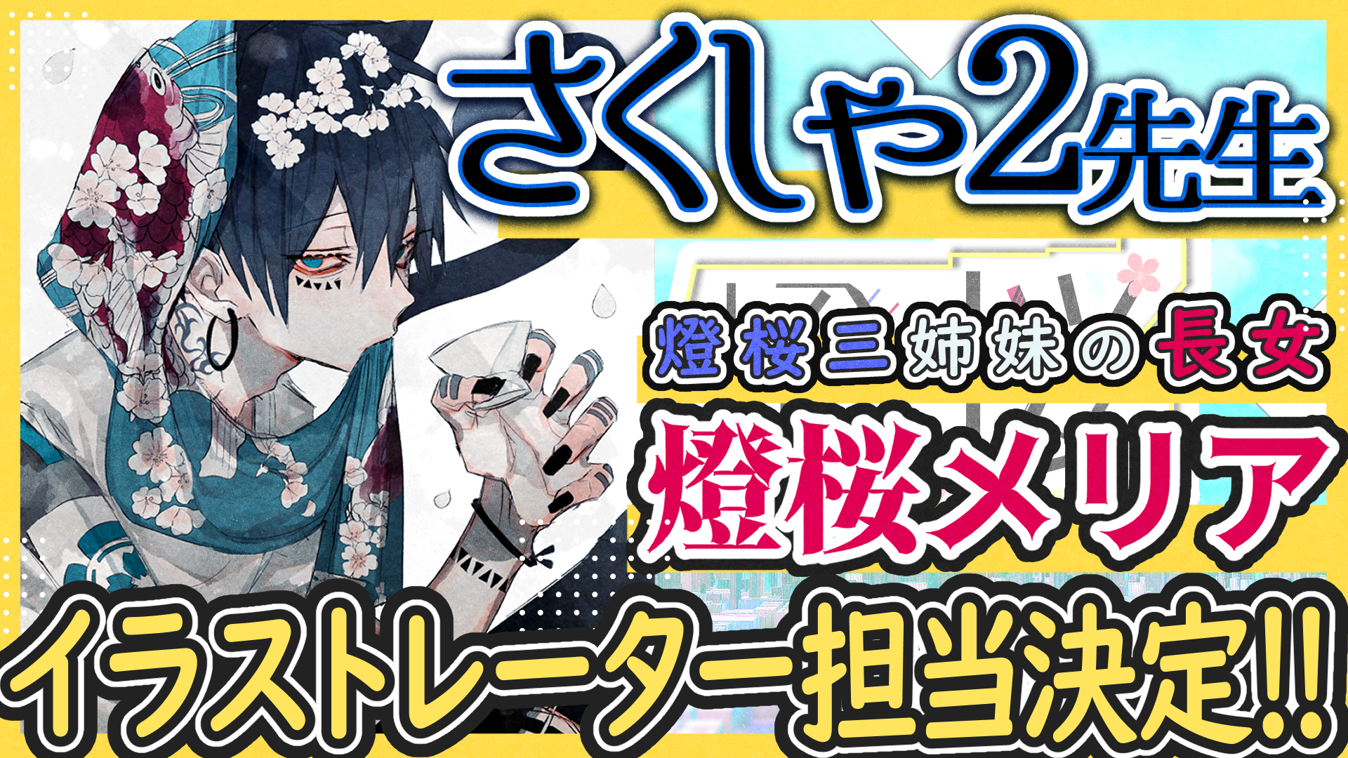 あのさくしゃ2先生が、燈桜三姉妹の長女「燈桜メリア」のキャラクターデザインを担当致します!詳細なお話しやイリス、リオンについても今後新情報としてどんどん出していくので、お楽しみに!