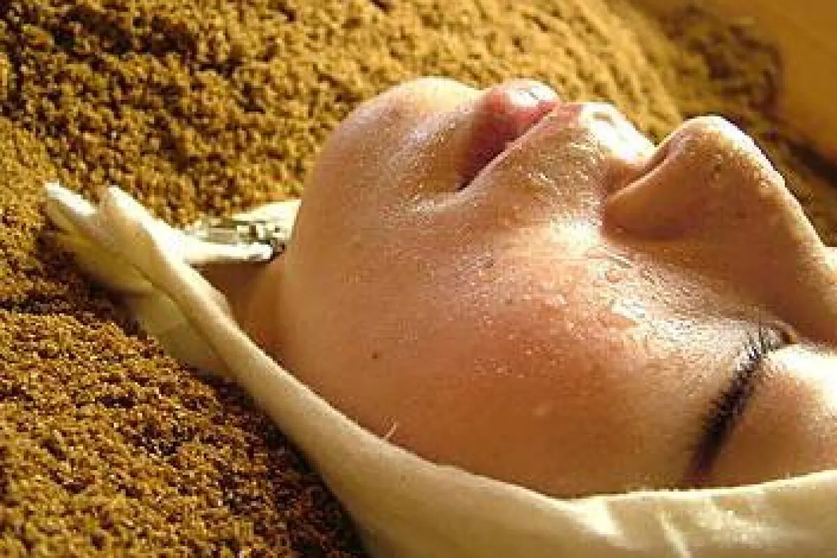 皆さま、酵素風呂をご存知でしょうか?酵素風呂は【ひのきのおが粉】と【米ぬか】をブレンドし、そこに【酵素の菌】を入れ発酵させたもの。身体をうずめるとじわじわと温まって驚くほどの汗をかき、身体を芯から温める美容健康法です。