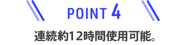 小さなボディに高性能バッテリーと省エネ機能で連続約12時間も使用が可能。