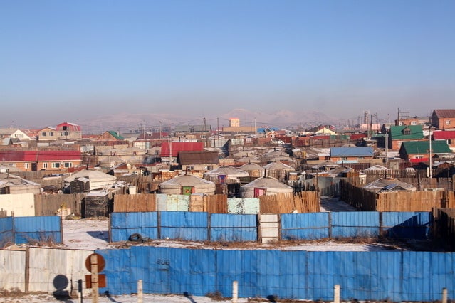首都ウランバートルの表通りは華やかで、ブティックやデパート等もありますが、ウランバートルを囲むように市街の周囲は、貧困層のゲル(モンゴル遊牧民の移動式住居)が所狭しとあります。ここで暮らしている人々は、都会のアパートにも住めず、かといって昔の遊牧生活に戻ることも出来ず、僅かな収入で暮らしています。