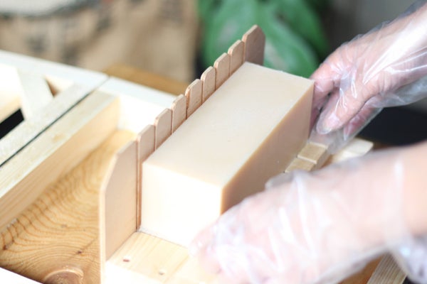 火を使わず化学反応熱でじっくり仕上げるコールドプロセス製法によって、素材の持つ美容成分やミネラル分を多く含む石けんが出来上がります。型出ししてから1ヶ月以上熟成させる製法です。