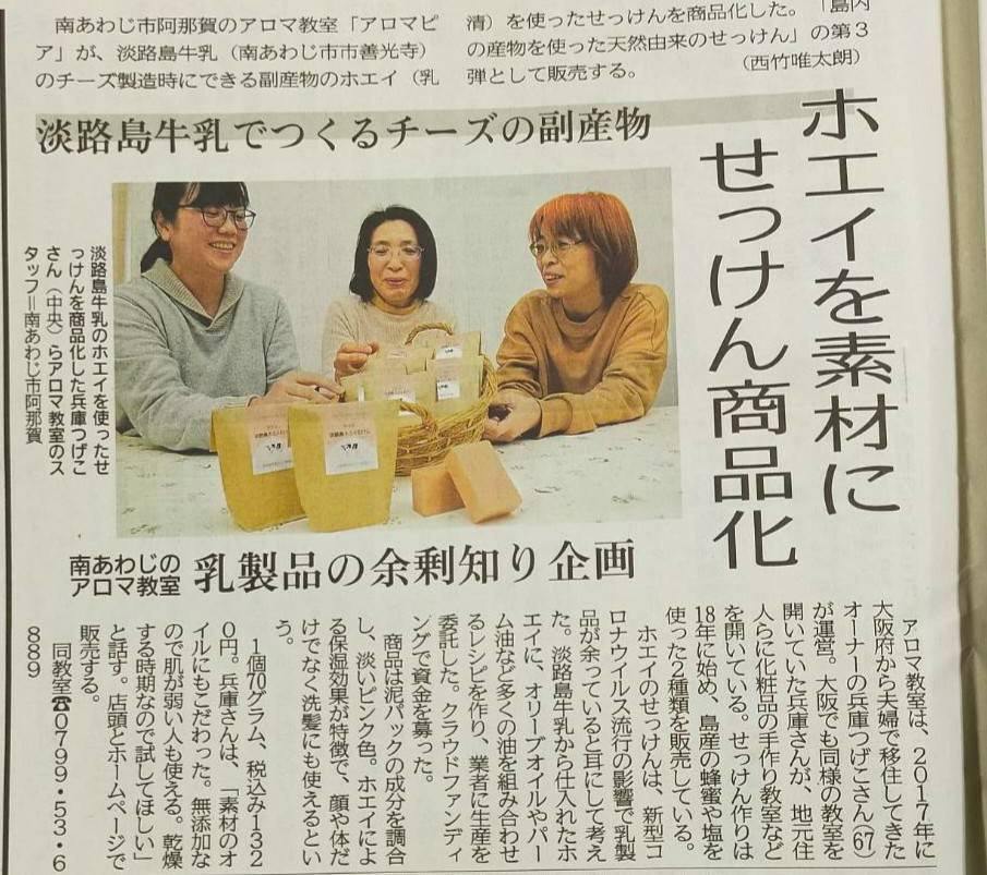 神戸新聞「淡路島ホエイ石けん」記事