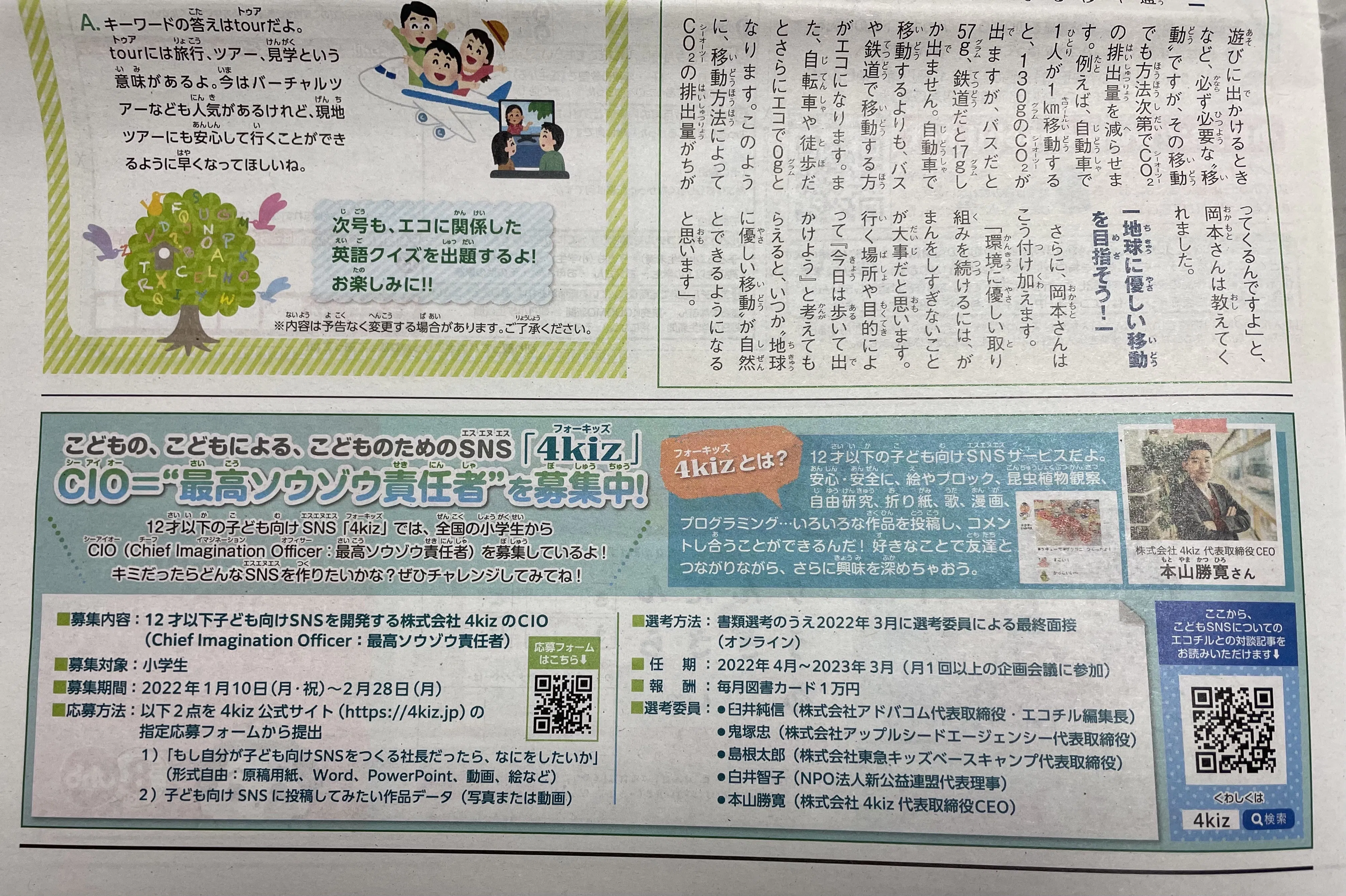 子ども環境情報紙「エコチル」でも、こどもCIOの公募について掲載されました!