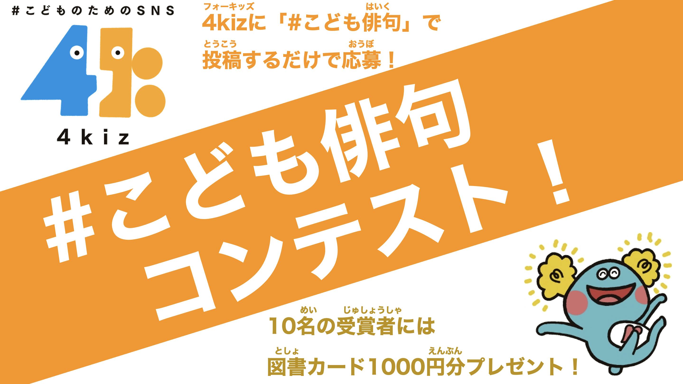 株式会社4kizでは、12歳以下の子供を対象に俳句作品のショート動画を4kiz(フォーキッズ)アプリ内において「#こども俳句」のハッシュタグをつけて投稿・共有し受賞作を決めるコンテストを開催、2023年1月19日〜2月28日に作品を募集します。
