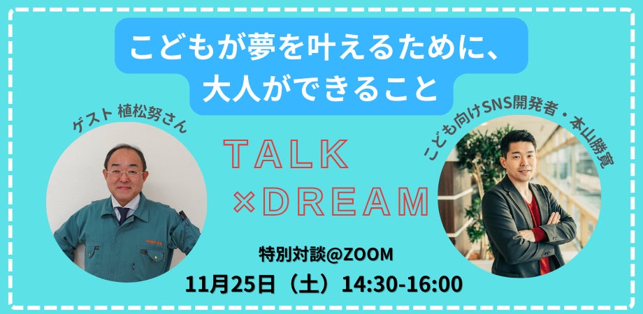 「どーせ無理」という言葉を世の中からなくすことをミッションに活動する植松努さんをゲストに迎え、「子どもたちの可能性を無限に引き出す世界中のつながりをつくる」をミッションに掲げ、子ども向けSNSを開発した本山勝寛との対談トークを行います。
