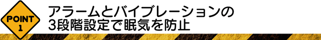 さらに眠気が気になる方はビープ音とバイブレーション機能を同時に作動させることも可能。あなたが眠気に気付いて体を戻さない限り作動し続けるので起きないわけにはいきません。