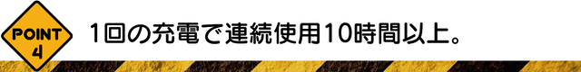 A. フル充電した場合、連続で10時間以上使用可能です。アラームやバイブの使用頻度が高いなど、使用環境によっても異なりますが、1日2時間通勤に使用して5日間程度使用可能です。長距離ドライバーの方は1日8時間も運転している方でも十分使用可能です。
