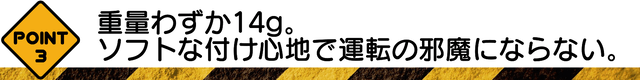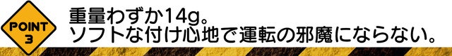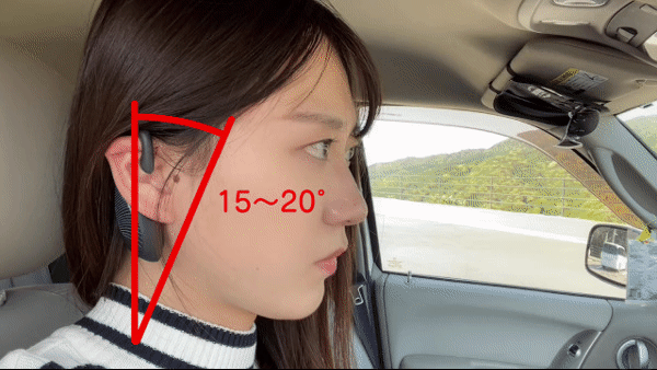 DRIVER ALARMの重量はたったの14g。人間工学に基づき耳の形に合わせてデザインしているのでジャストフィット。左右や後方確認で首を振っても耳から落ちない設計です。