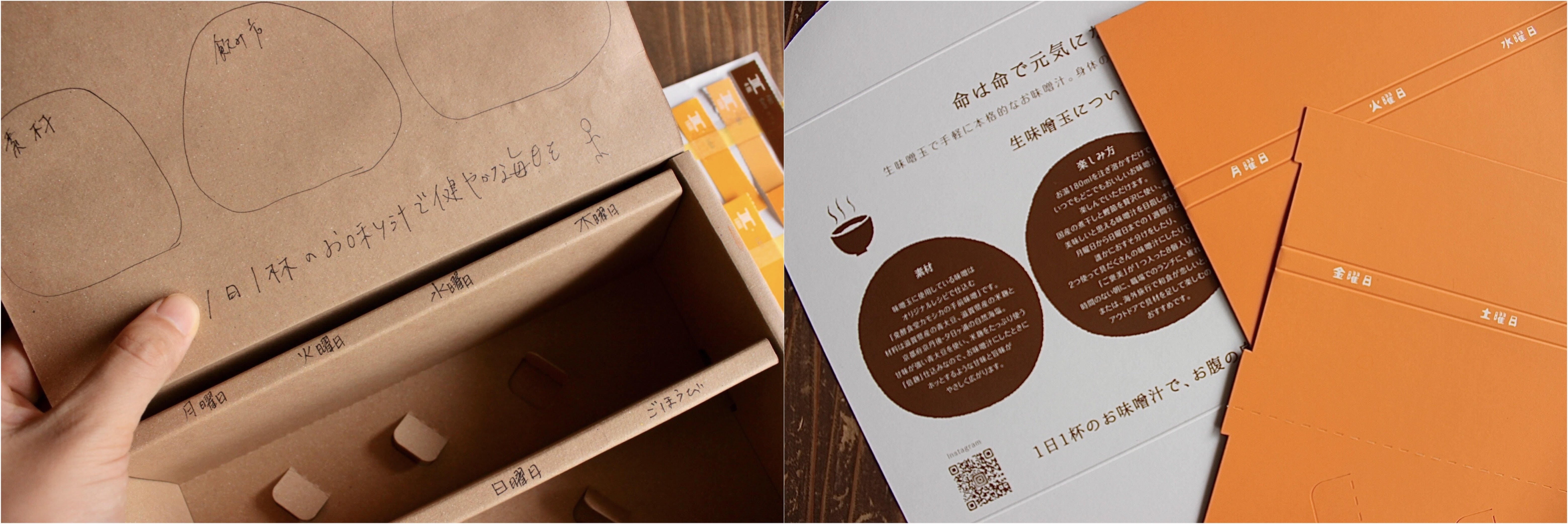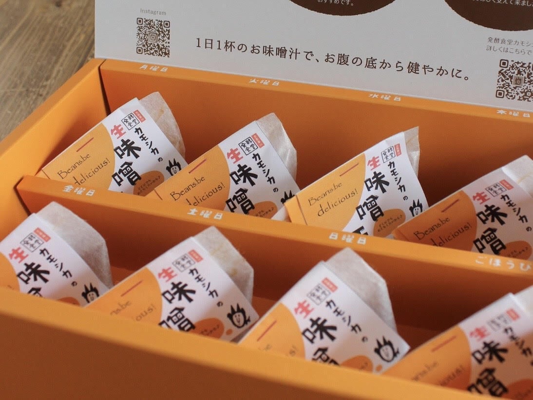 わたしたち発酵食堂カモシカが生味噌玉に込めた想いを、MUTOYOTADOさんのギフトボックスが、まるっと包み込んでくれました。