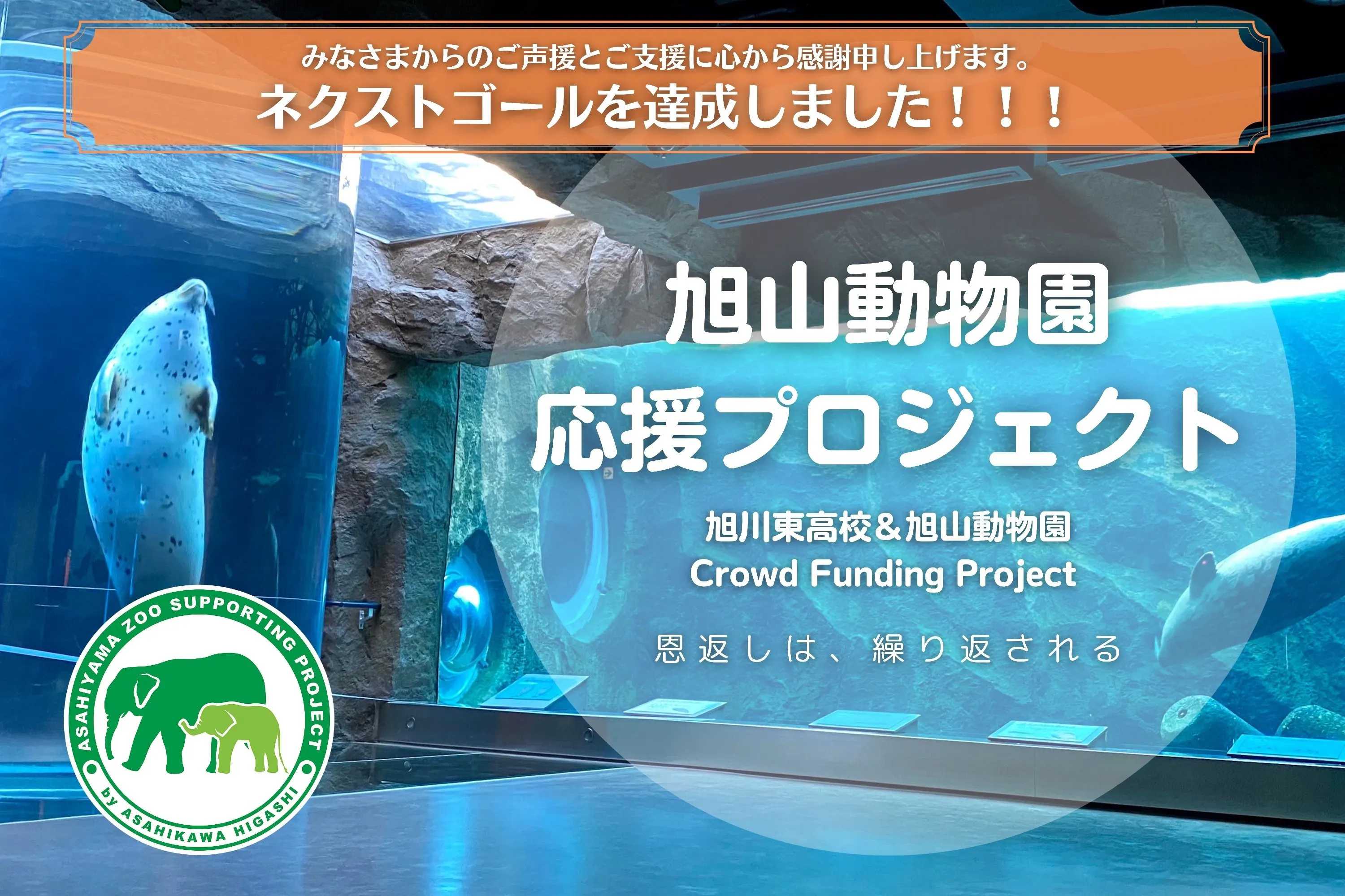 旭山動物園応援プロジェクトは皆さまからの多くのご声援とご支援によって、ネクストゴールである1000万円という目標を達成することが出来ました!!これまで支援してくださった1285名の皆さま、そして本プロジェクト関係者様へ心から感謝申し上げます。