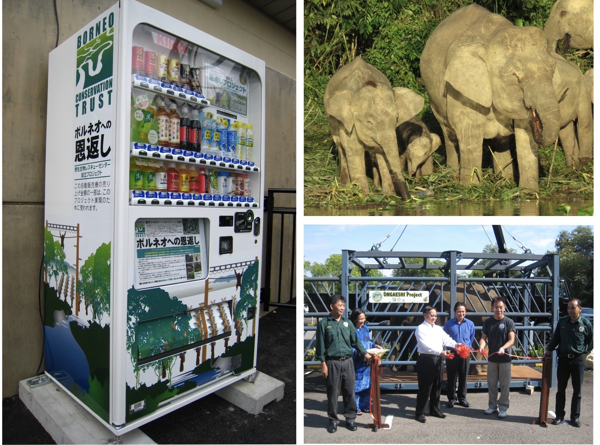 恩返しプロジェクトの第一弾として、プランテーションに迷い込んだボルネオゾウを森林保護地に移動させるための新しい輸送檻を製作しています。この輸送檻は、旭山に6台設置されている寄付型自動販売機で集まった資金を元に作られています!(飲み物を買うと、その代金の一部がボルネオへの恩返しプロジェクトに寄付される仕組み)