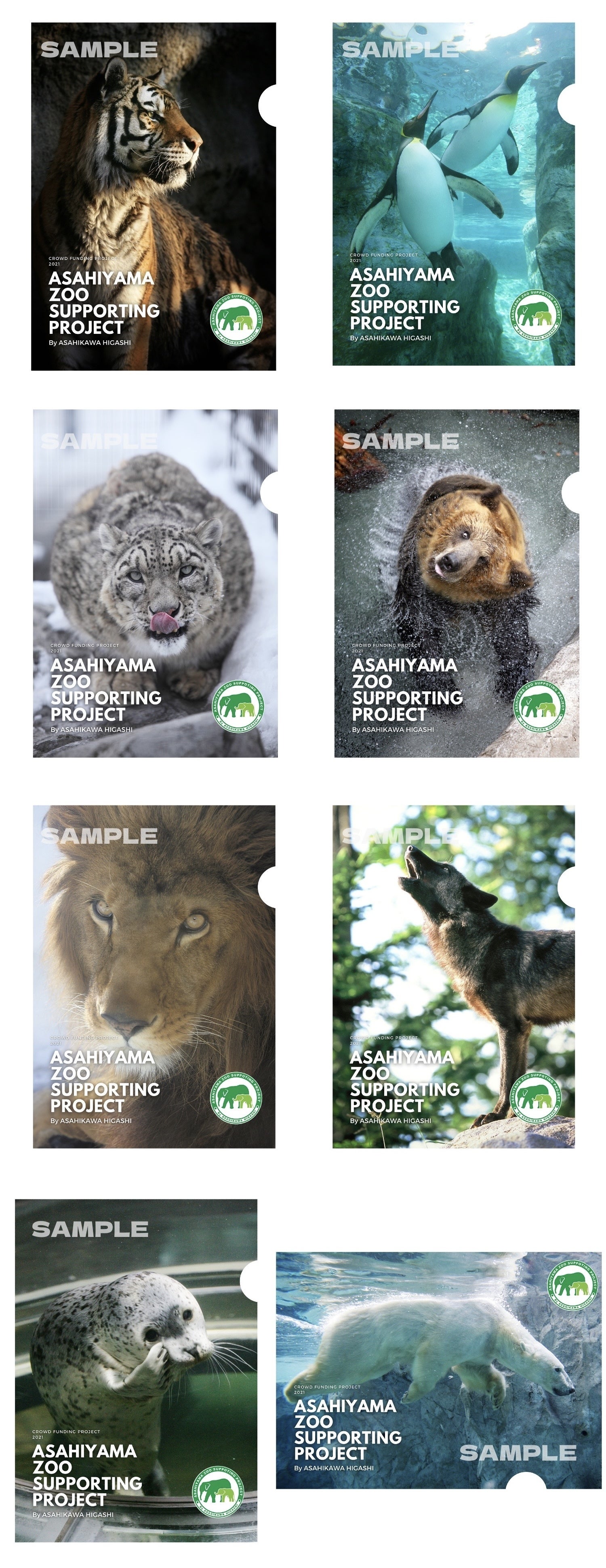 こちらの限定どうぶつクリアファイルは全8種制作し、本プロジェクトロゴマークと共に旭山動物園の動物たちの躍動感溢れる写真を使い、よりシャープな印象となっています!