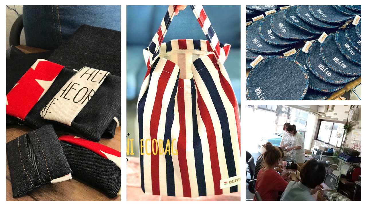 道の空は,普段,寄付された着物や古布を,ミシンを使いリメイクし商品化して販売しています。利用者(障がいのある方)さんで,ミシンに興味のない方や,軽作業が好きな方には,内職作業を行ってもらっています。