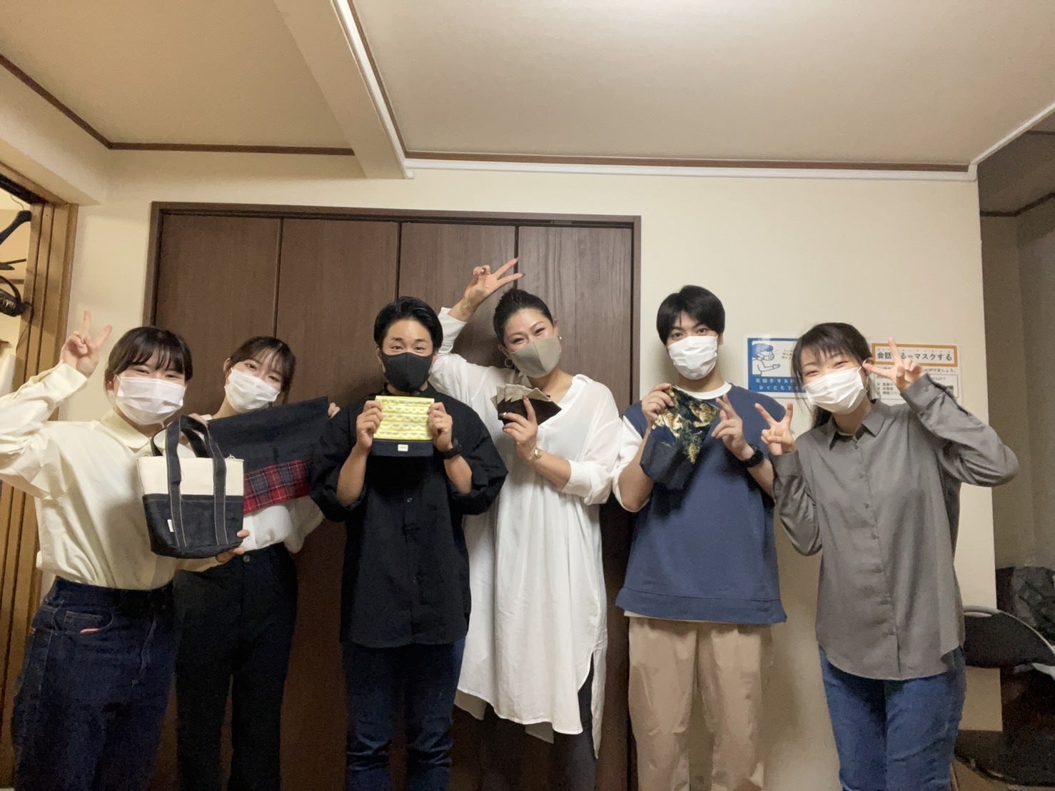 私達,衣の魔女プロジェクト・チームは,半年間,サーキュラーエコノミ―に挑戦するという目標のもと活動してまいりました。社会問題を解決したいと全員が強く思っており,未活用生地を用いたポーチ・トートバックを販売しようと考えました。学生がアイデアを考え,福祉事業所の皆様に一つ一つ丁寧に手作業で作っていただいた暖かみのある商品です。ぜひ手に取っていただき,障がい者についての理解や身近にある衣類の問題への関心を深めていただきたいです。