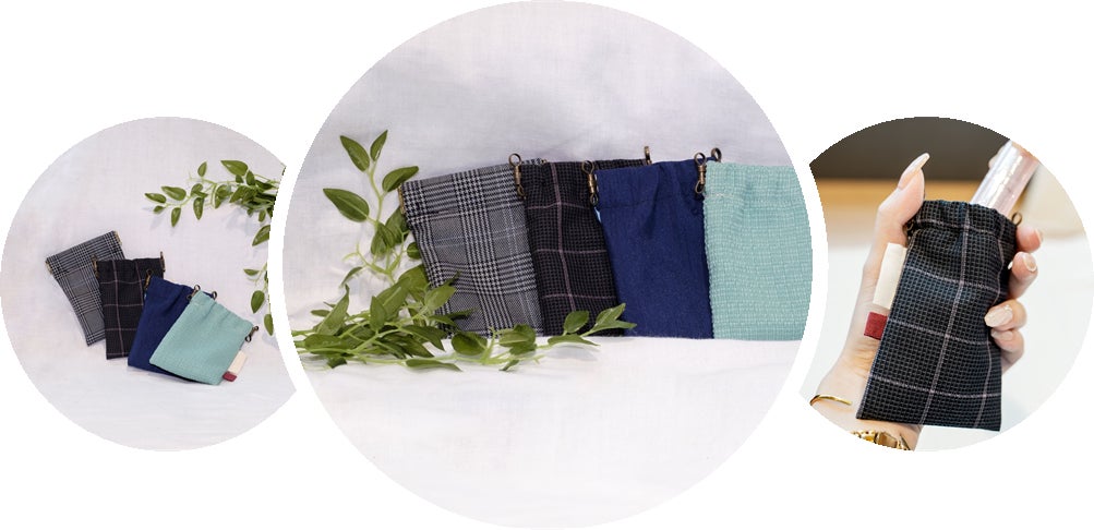 今回は,株式会社チクマのご協力のもと,未活用の高品質な生地を購入し,アップサイクル商品として,「WITCHILL(ウィッチル)」シリーズに生まれ変わらせました。