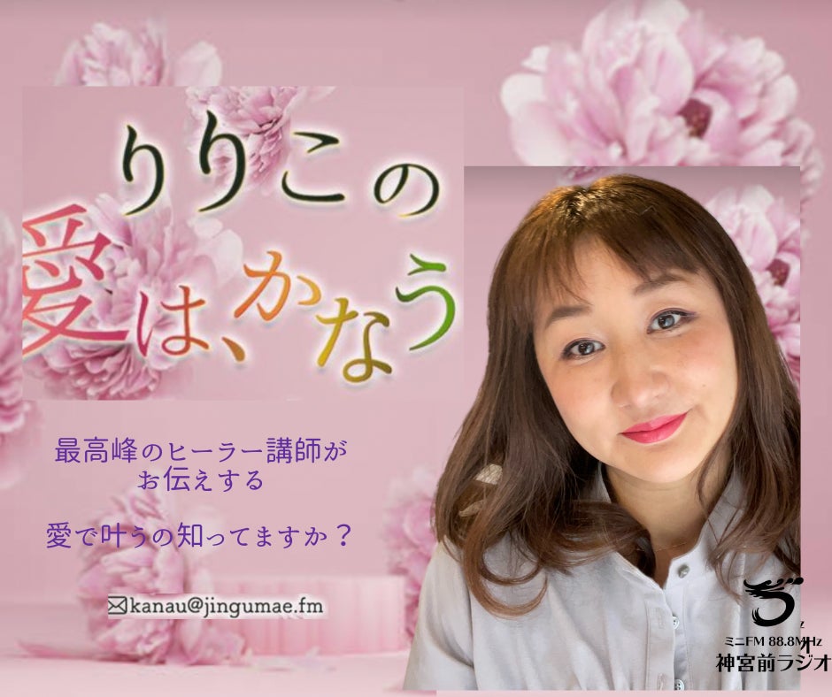 私は、自らのシータヒーリングサロン「リリィ・イン・ブルーム 」で、セミナーや個人セッションを行っている他、神宮前ラジオでは「りりこの 愛は、かなう」という番組と、「新しいわたしラジオ」で、「純粋な自分」に戻り、幸せな人生を歩んでいくためのヒントをお伝えしています。