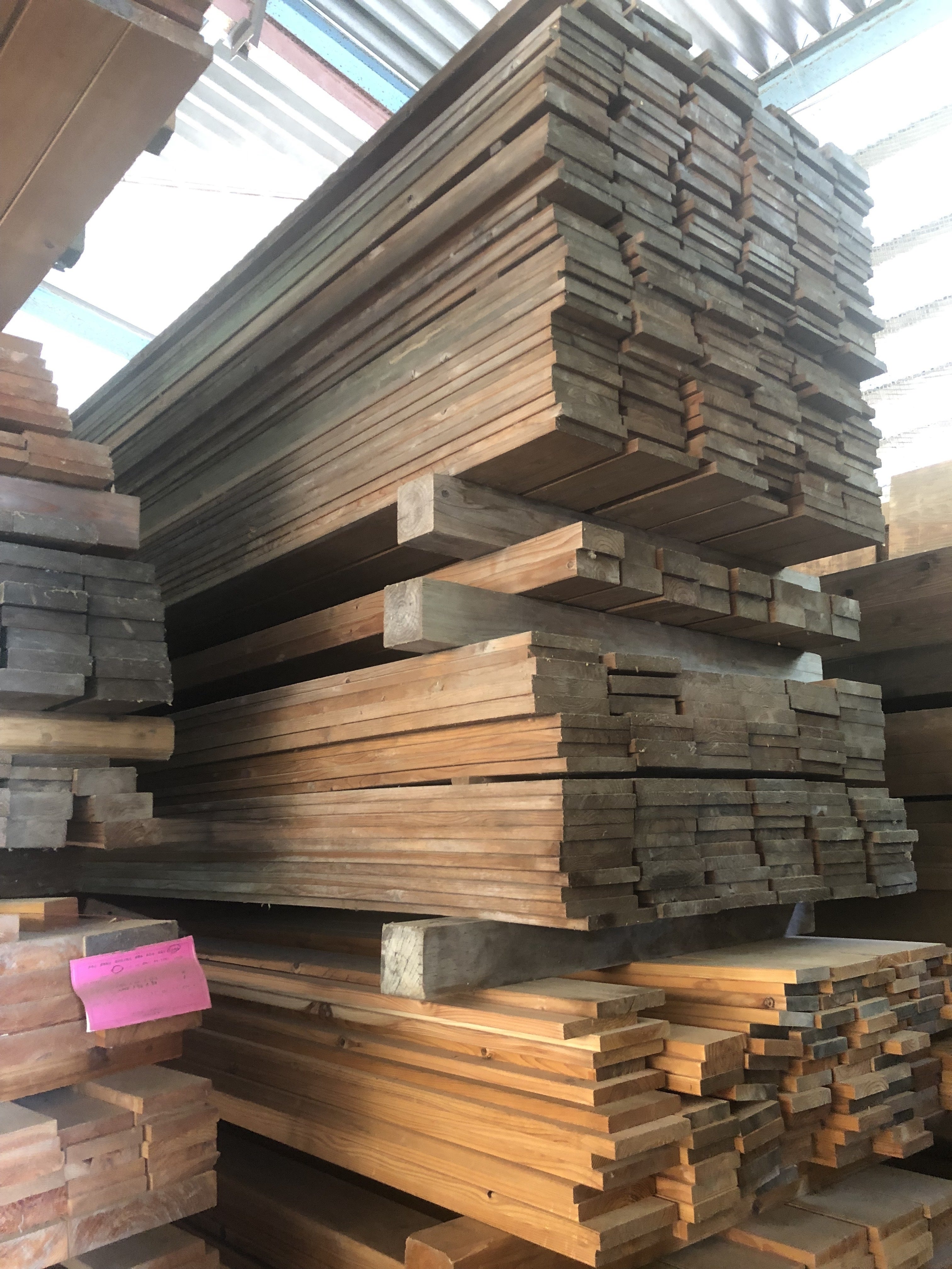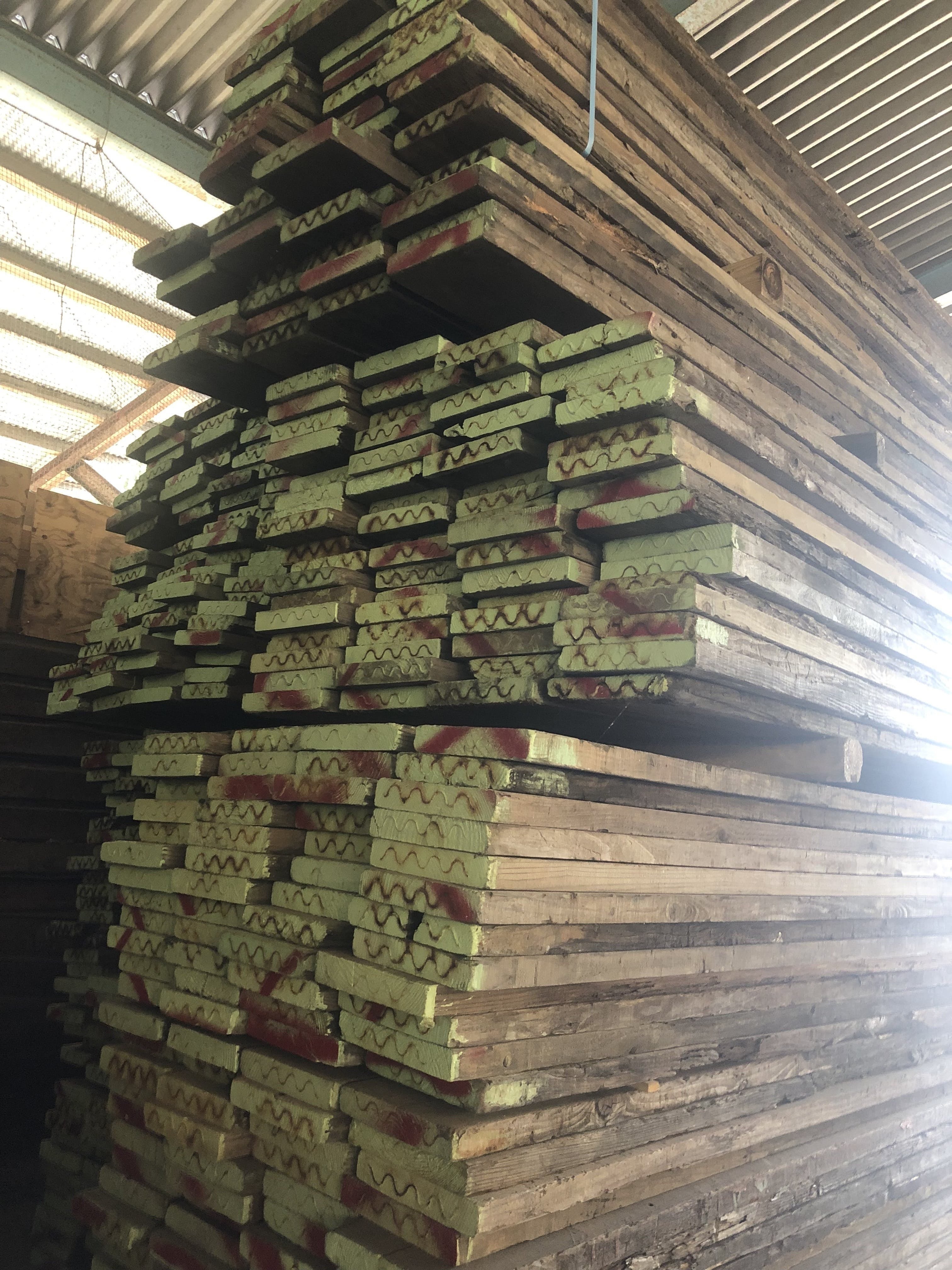 使われなくなった足場板や、材木としてはB級品になってしまうような材を使って、新たに命を吹き込んでいきます。ちょっと曲がってたり、削れてたり、味わいがたっぷりありそうな木材をゲットしてきました!
