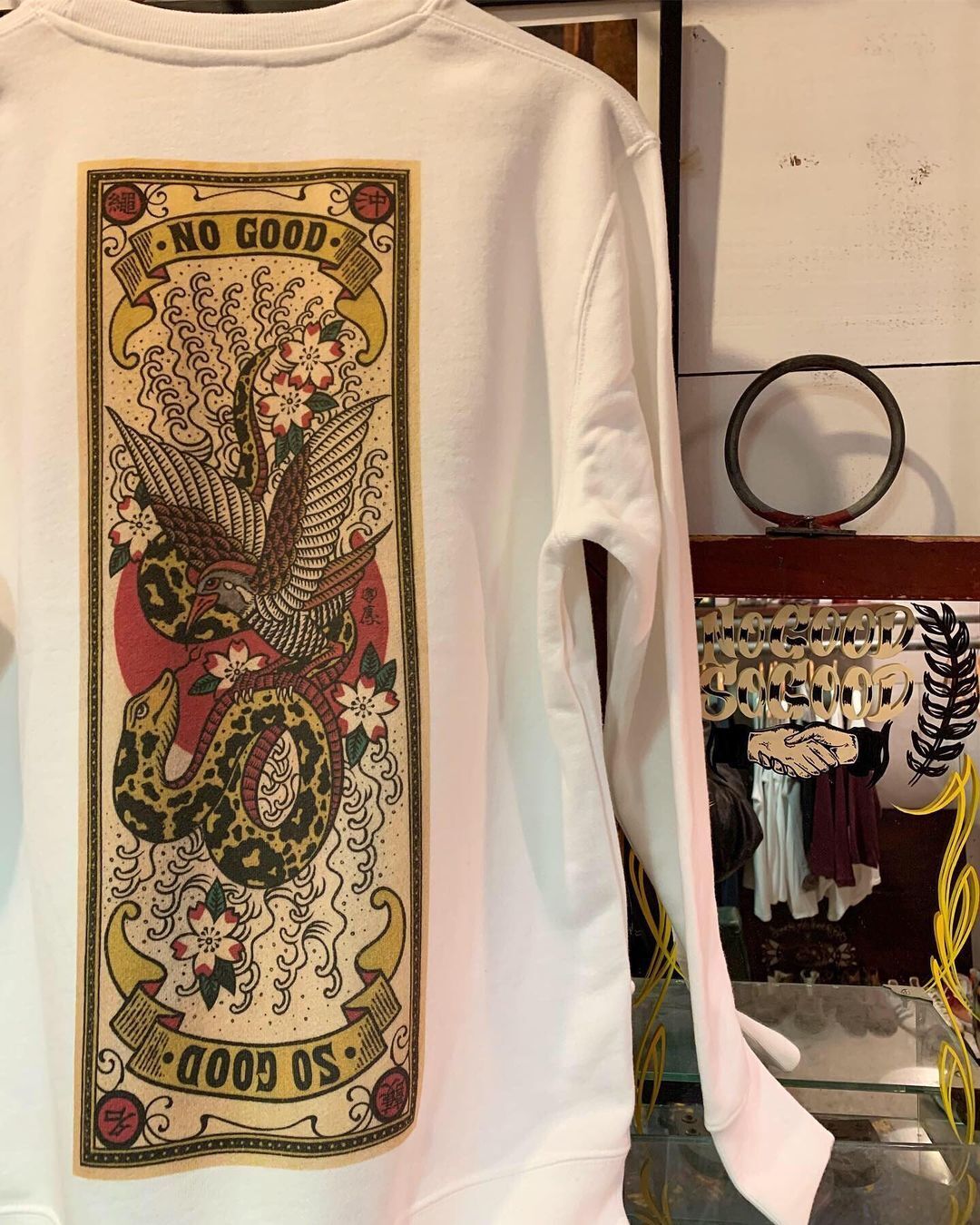沖縄時代に仲間と立ち上げたカフェ・BLUE TRIPのデザインや、同じく沖縄の友人がやっているアパレルのオリジナルデザインで遊鷹さんを知り、