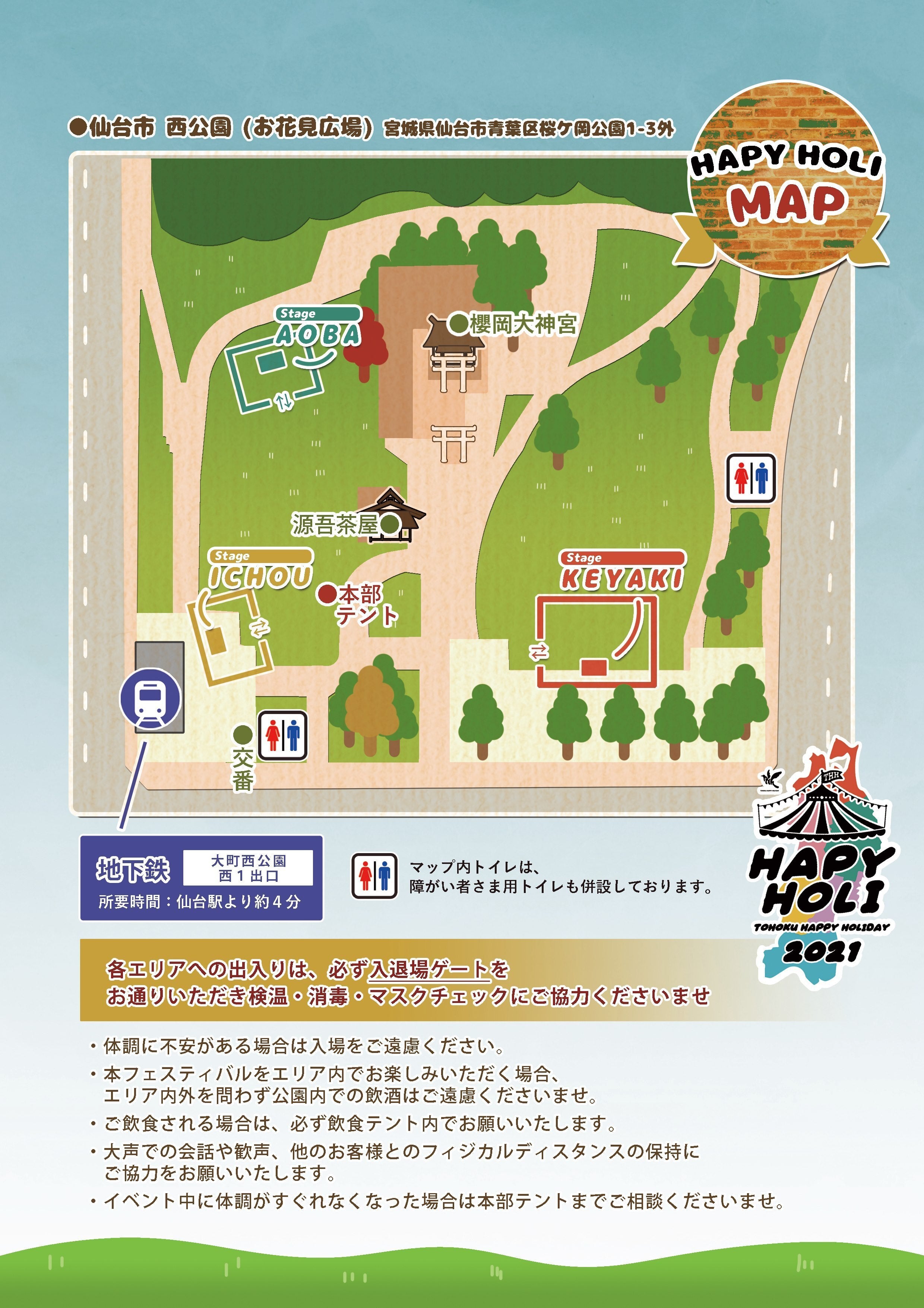 仙台市からの名義後援のもと、西公園という広々とした公園をお借りしており、感染対策を徹底しながら開催ができるよう、専門家のみなさまのご意見等も取り入れながら準備を進めております。