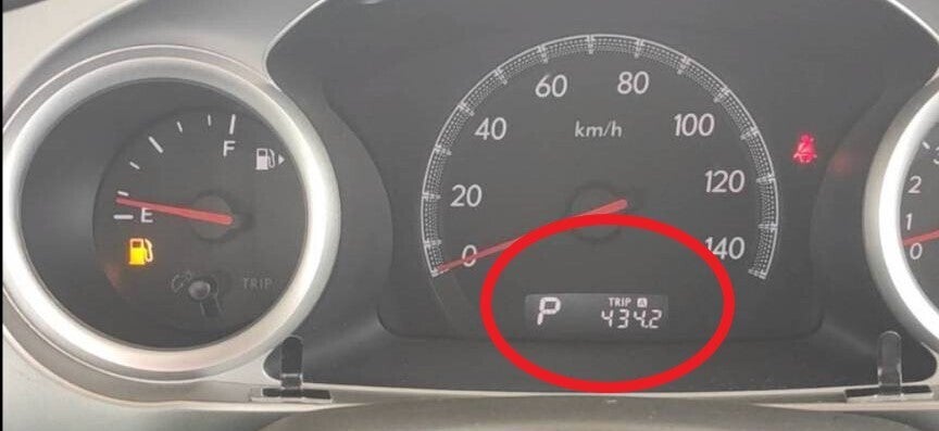③ようやくガソリンランプ点滅。20Lで434.2kmも走れました!!